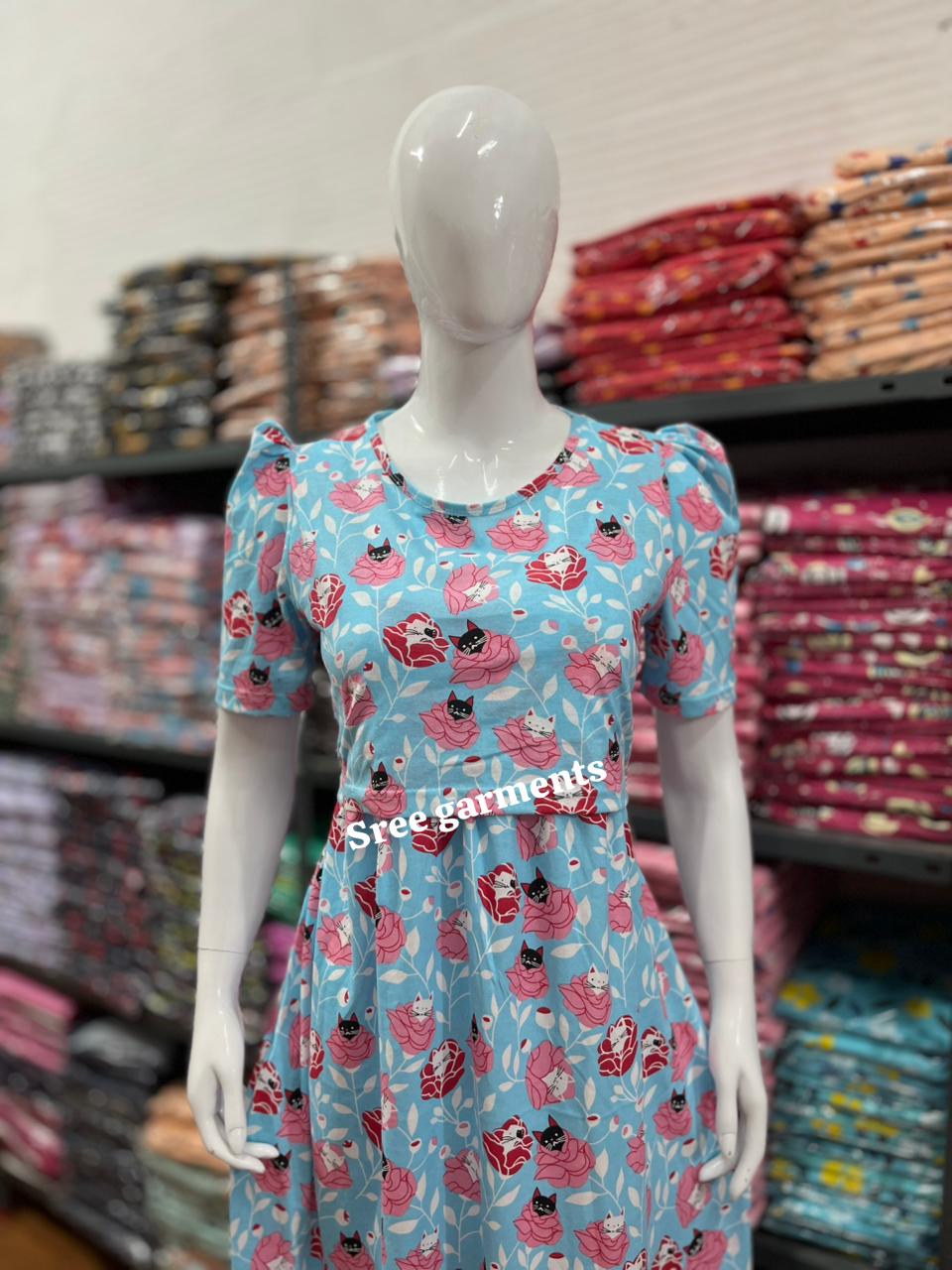 Floral Maternity and feeding wear ankle length With puff Sleeve.