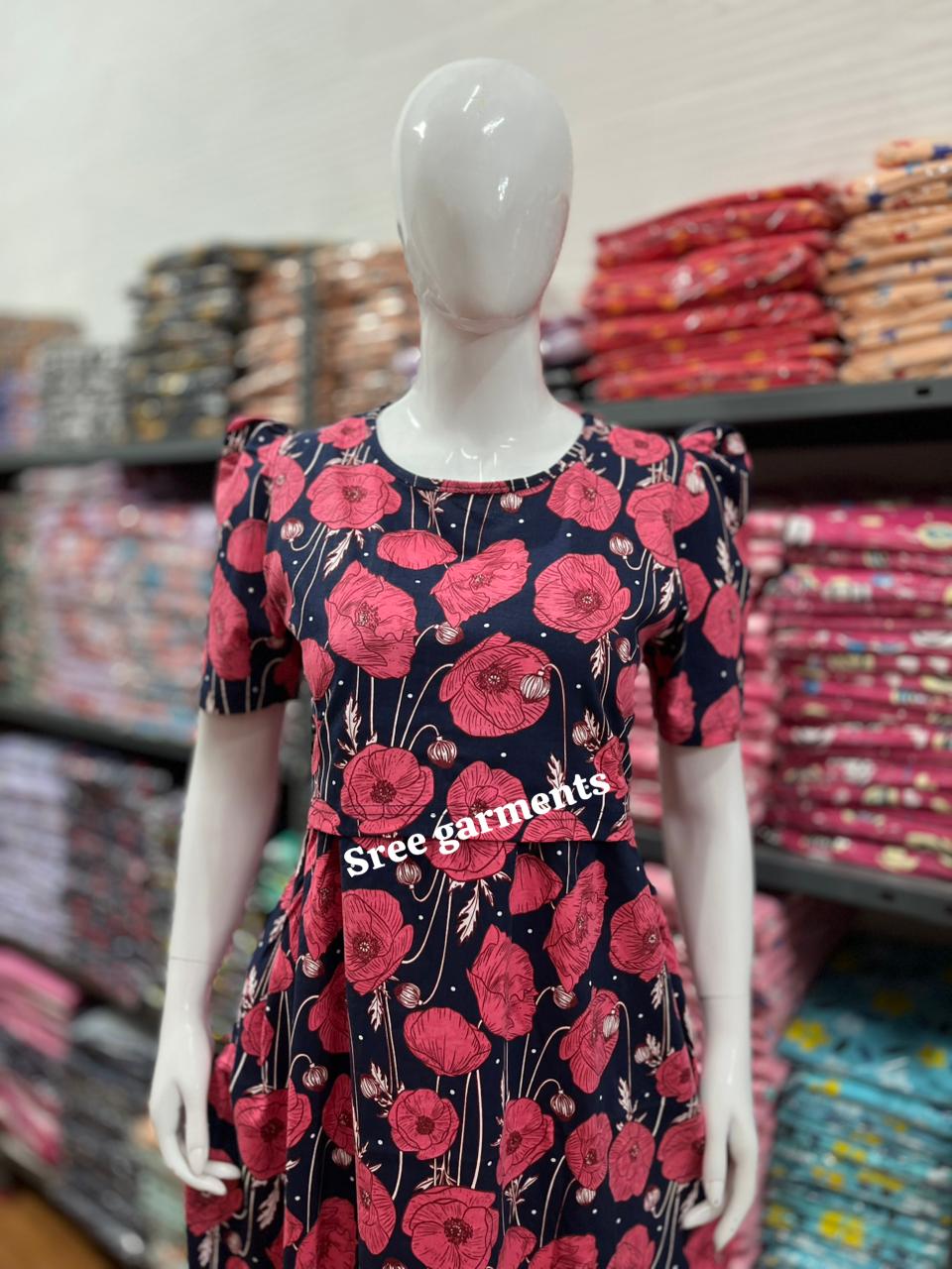Floral Maternity and feeding wear ankle length With puff Sleeve.
