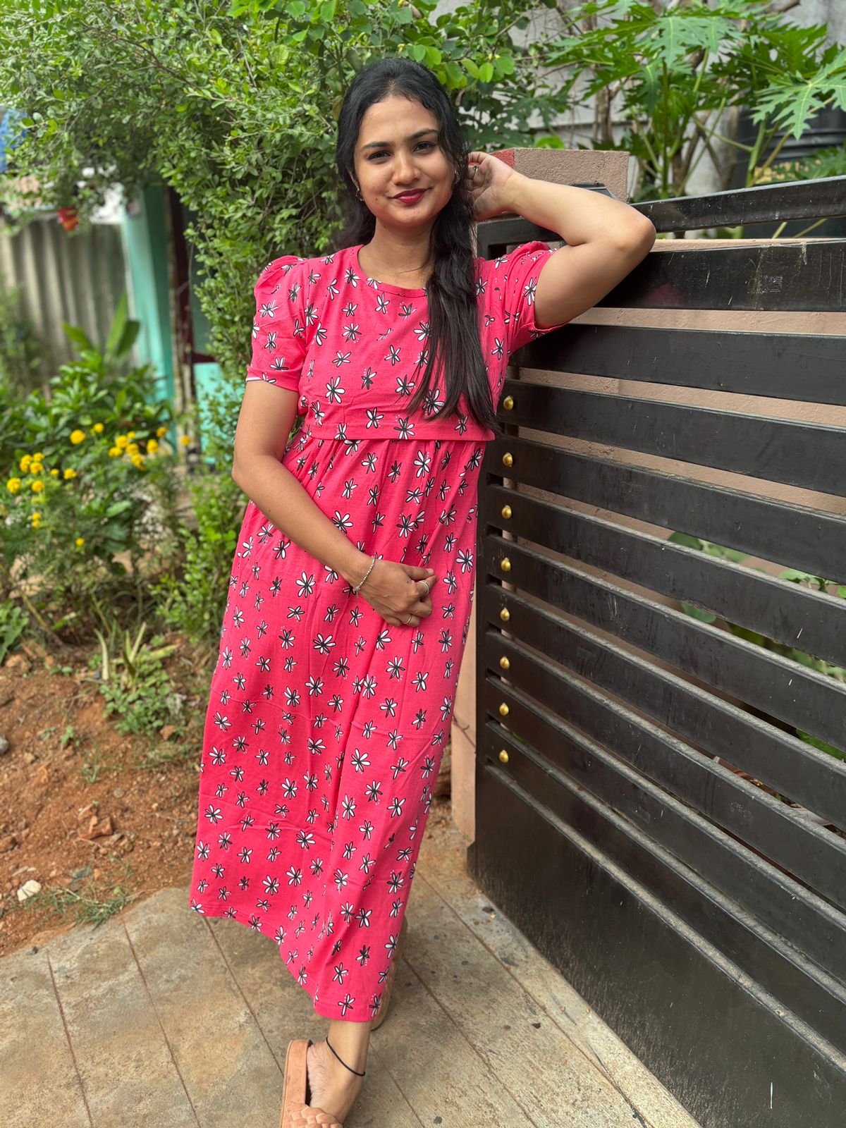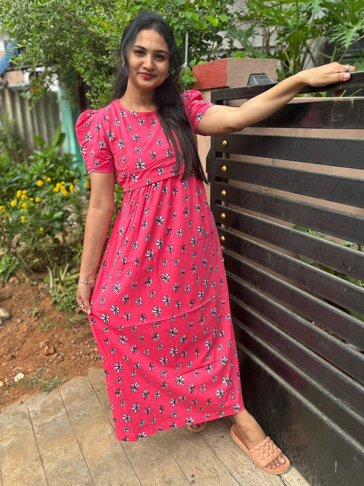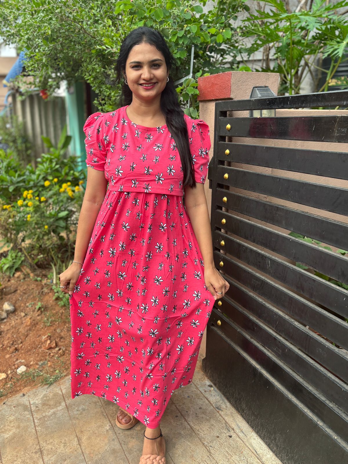 Floral Maternity and feeding wear full length With puff Sleeve.