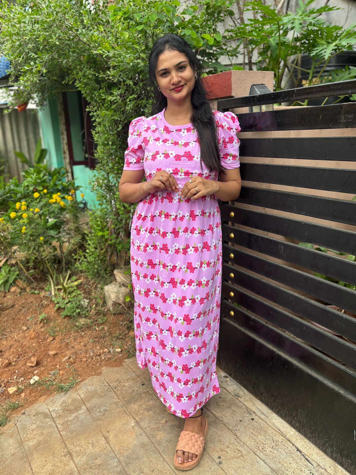 Floral Maternity and feeding wear full length With puff Sleeve.